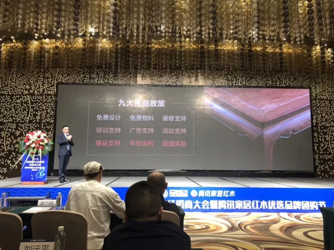 在14日上午舉辦的優(yōu)秀紅木品牌發(fā)布會上,雅宋紅木總經(jīng)理石擁軍帶來《城市合伙人共贏計劃》。短短幾分鐘,強(qiáng)大的招商政策炒熱全場。