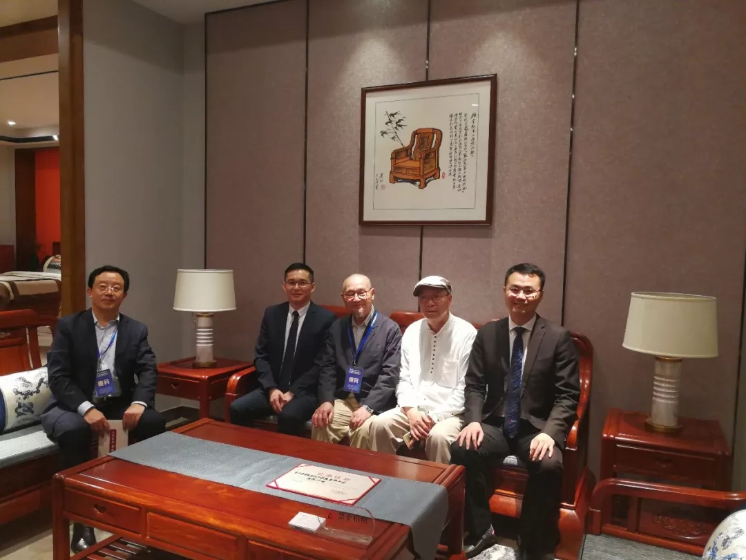 中國高等教育家具設(shè)計專業(yè)創(chuàng)始人胡景初(中)、教育部教學(xué)改革示范專業(yè)“家具設(shè)計與制造”專業(yè)帶頭人彭亮(右二)、華南農(nóng)業(yè)大學(xué)博士生導(dǎo)師李凱夫(左一),給予雅宋紅木高度評價。