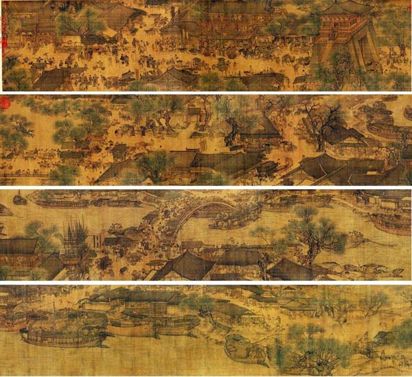 頭戴花枝,涌向皇家園林“金明池”的游人絡(luò)繹不絕。