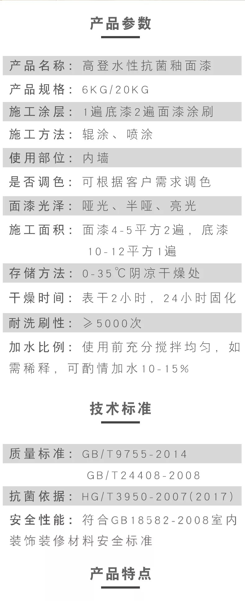 產(chǎn)品描述:高登水性抗菌釉面漆是一種抗菌耐久性能極好的水性釉面漆,除了抗菌以外還具有一系列優(yōu)良的性能,如與基材附著力強(qiáng),漆膜柔韌性好、耐黃變、耐紫外線老化,涂層抗劃傷、抗污染、耐酸耐堿等功能。高登抗菌釉面漆有單組份釉面漆、雙組份釉面漆,它們?cè)诳咕阅苌舷嗖顭o(wú)異,但在抗污及抗劃傷等功能上有些差異